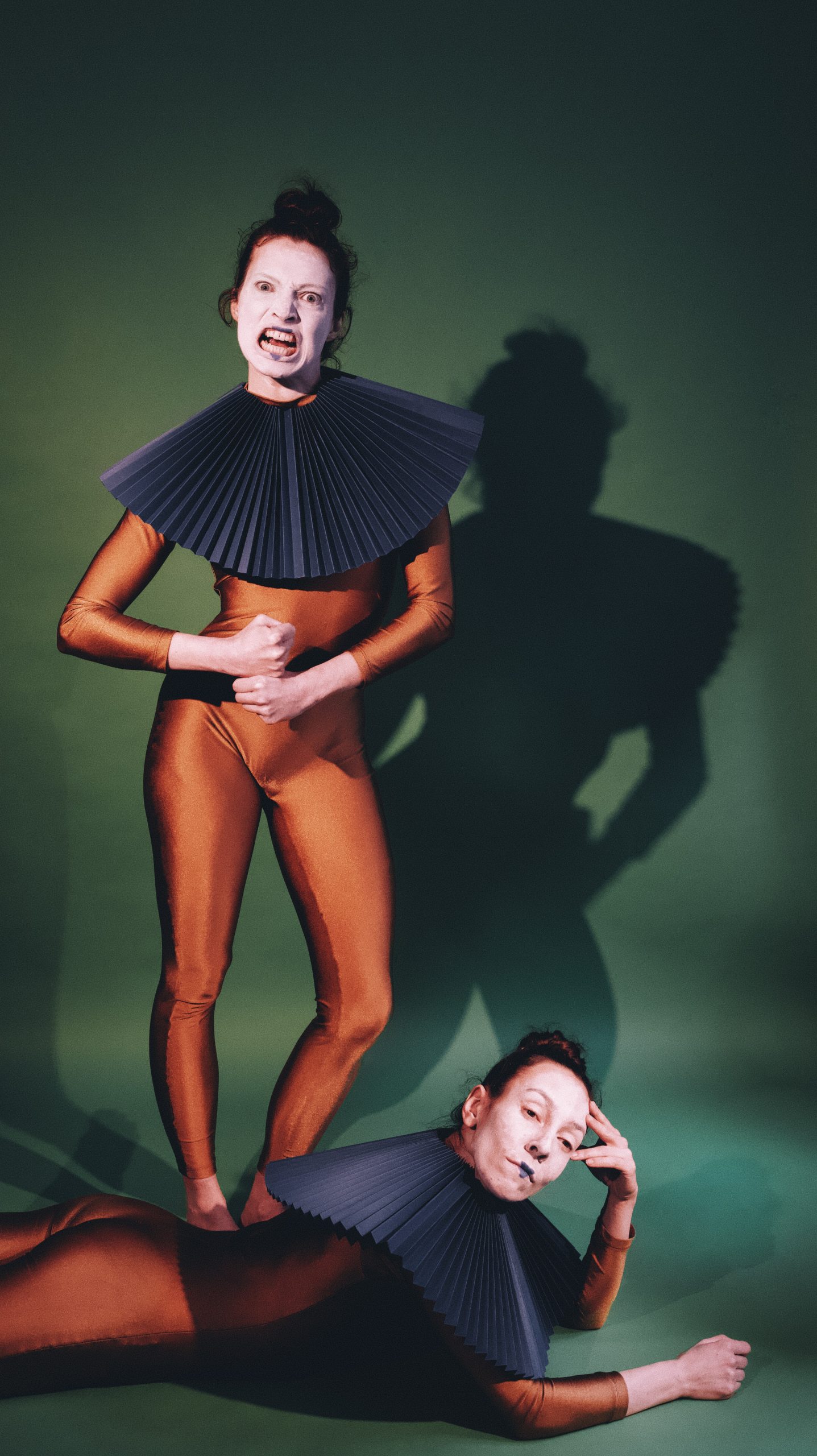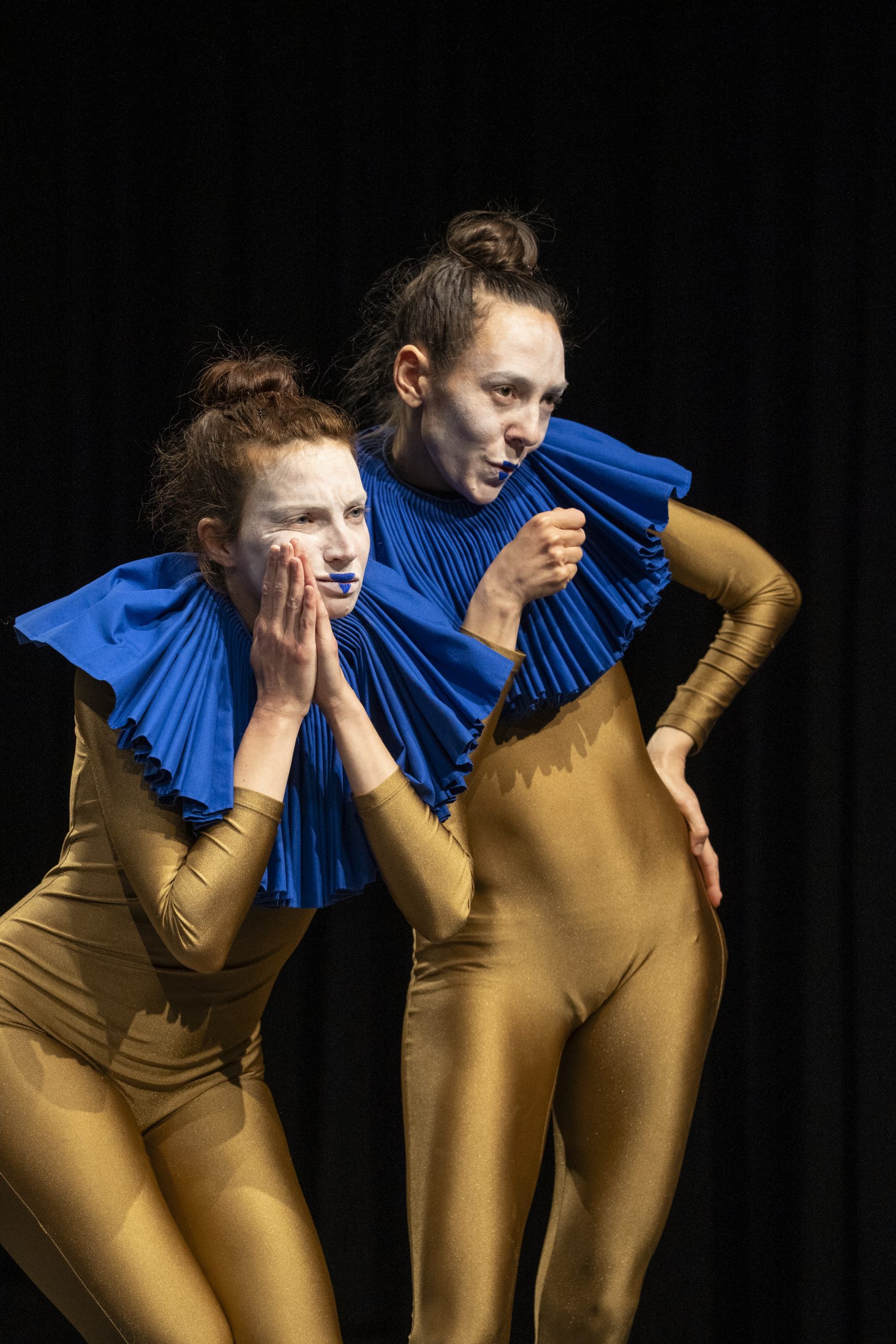The duet “mit plumper Eleganz” (“with awkward elegance”) is inspired by Camus’ philosophical essay The Myth of Sisyphus and reflects the absurdity of our existence in an ironic and poetic way. The dance, based on everyday movements, is a kind of homage to the contradictions and versatility of the human being. Throughout, it makes use of various forms of paradox. It is a journey through human existence that unites the complex and the mundane, the tragic and the comic, the beautiful and the ugly within a single dance, thereby resisting any form of ideology.